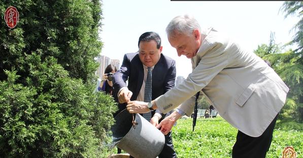 隨后,在易園舉行的共植友誼樹(shù)活動(dòng)上,馬林青發(fā)表了熱情洋溢的致辭。他說(shuō),共植友誼樹(shù),情深萬(wàn)年長(zhǎng)。這片蒼翠繁茂的國(guó)際友好交往紀(jì)念林,見(jiàn)證了安陽(yáng)與加拿大萊橋市、韓國(guó)安養(yǎng)市等多個(gè)國(guó)際友好城市的交往合作。此次我們共同種植下第十四棵友誼樹(shù),相信在大家的共同呵護(hù)下,中法友誼之樹(shù)必將根深葉茂、萬(wàn)古長(zhǎng)青。阿蘭·拉巴特,法中友協(xié)聯(lián)合會(huì)秘書(shū)長(zhǎng)、弗朗什—孔泰中國(guó)友協(xié)主席阿蘭·嘉寶賀喜,南特—大西洋中國(guó)友協(xié)主席愛(ài)德蒙·博雷,雷恩中國(guó)友協(xié)主席玫雅琳等紛紛發(fā)言,共同表示,將努力為深化中法兩國(guó)人民友誼作出更大的貢獻(xiàn)。