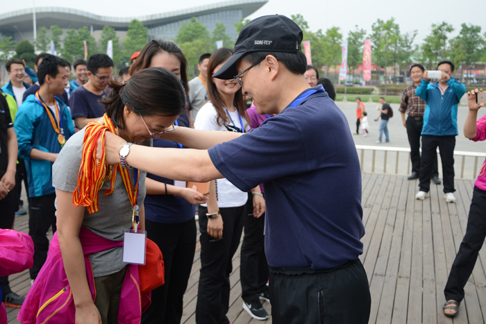 9點(diǎn)30分,健步走活動開始。40多分鐘后,60多名黨員干部一個(gè)不拉地走過終點(diǎn)。王耀等部領(lǐng)導(dǎo)分別給獲得男女前10名的同志頒獎。