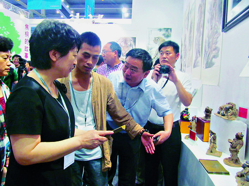 趙素萍對(duì)我市展出的泥塑、泥咕咕、裸眼3D產(chǎn)品、動(dòng)漫短片等表現(xiàn)出濃厚的興趣,希望參展企業(yè)在宣傳推介文化產(chǎn)品的同時(shí),積極學(xué)習(xí)外地在文化產(chǎn)業(yè)發(fā)展方面的經(jīng)驗(yàn)和做法,不斷完善提升,為我市乃至全省文化產(chǎn)業(yè)的大發(fā)展大繁榮提供強(qiáng)有力的支持。在河南三陽(yáng)光電有限公司展臺(tái)處,趙素萍觀看了裸眼3D產(chǎn)品展示,認(rèn)為該項(xiàng)目科技含量高、市場(chǎng)潛力大,鼓勵(lì)企業(yè)加快開(kāi)發(fā)更舒適、更逼真的產(chǎn)品,早日實(shí)現(xiàn)產(chǎn)品進(jìn)入家庭的目標(biāo)。在魂子泥塑藝術(shù)有限公司展臺(tái)處,趙素萍認(rèn)真察看該公司的展品,并與公司負(fù)責(zé)人、河南民間工藝美術(shù)大師宋慶春親切交談,鼓勵(lì)他進(jìn)一步將傳統(tǒng)文化與現(xiàn)代創(chuàng)意相融合,做出更多更好的工藝品。趙素萍還觀看了市華寶動(dòng)漫有限公司出品的動(dòng)漫短片《小鶴仙與大水怪》,對(duì)該公司的創(chuàng)意及制作水平給予充分肯定。